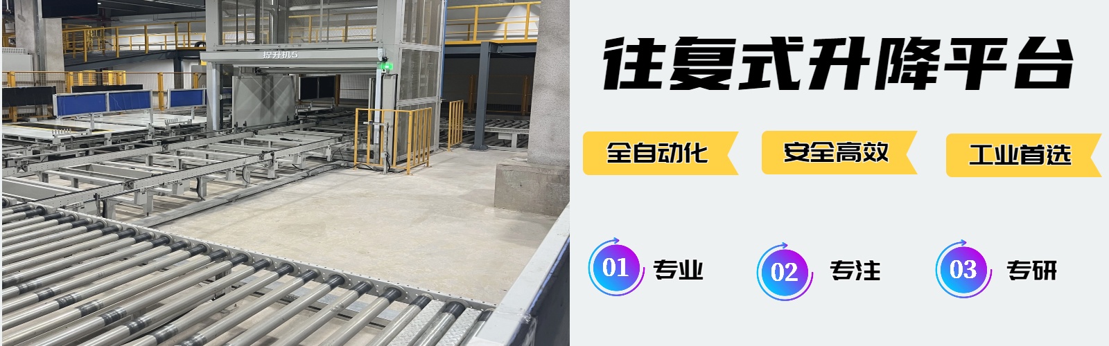 往復式提升機是由鏈條帶動,通過變頻調速控制電機,便提升轎廂上下往復運動.提升轎廂上配有傳動機構,以便被輸送物自動進入升降機的提升轎廂上。該類提升機具有控制先進,性能可靠,提升轎廂定位精度高等特點。